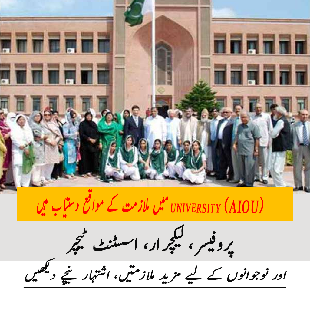 AIOU advertised several job openings for teaching faculty and administrative positions. Below is a list of the key positions:
